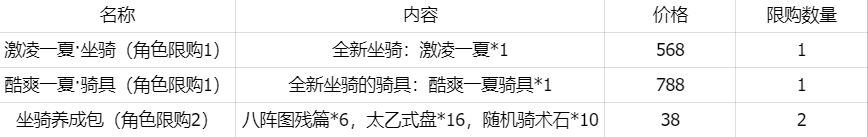 坐骑相关礼包:全新坐骑和对应骑具上线!具体效果可看下图~