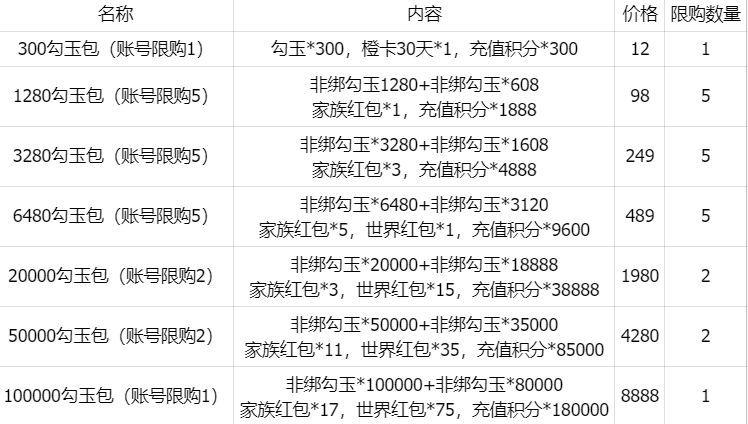 - 礼包购买超过次数将不额外附赠勾玉,仅根据当前游戏内该档位勾玉数量进行发放;道具礼包超过购买限购次数将发放等价勾玉。