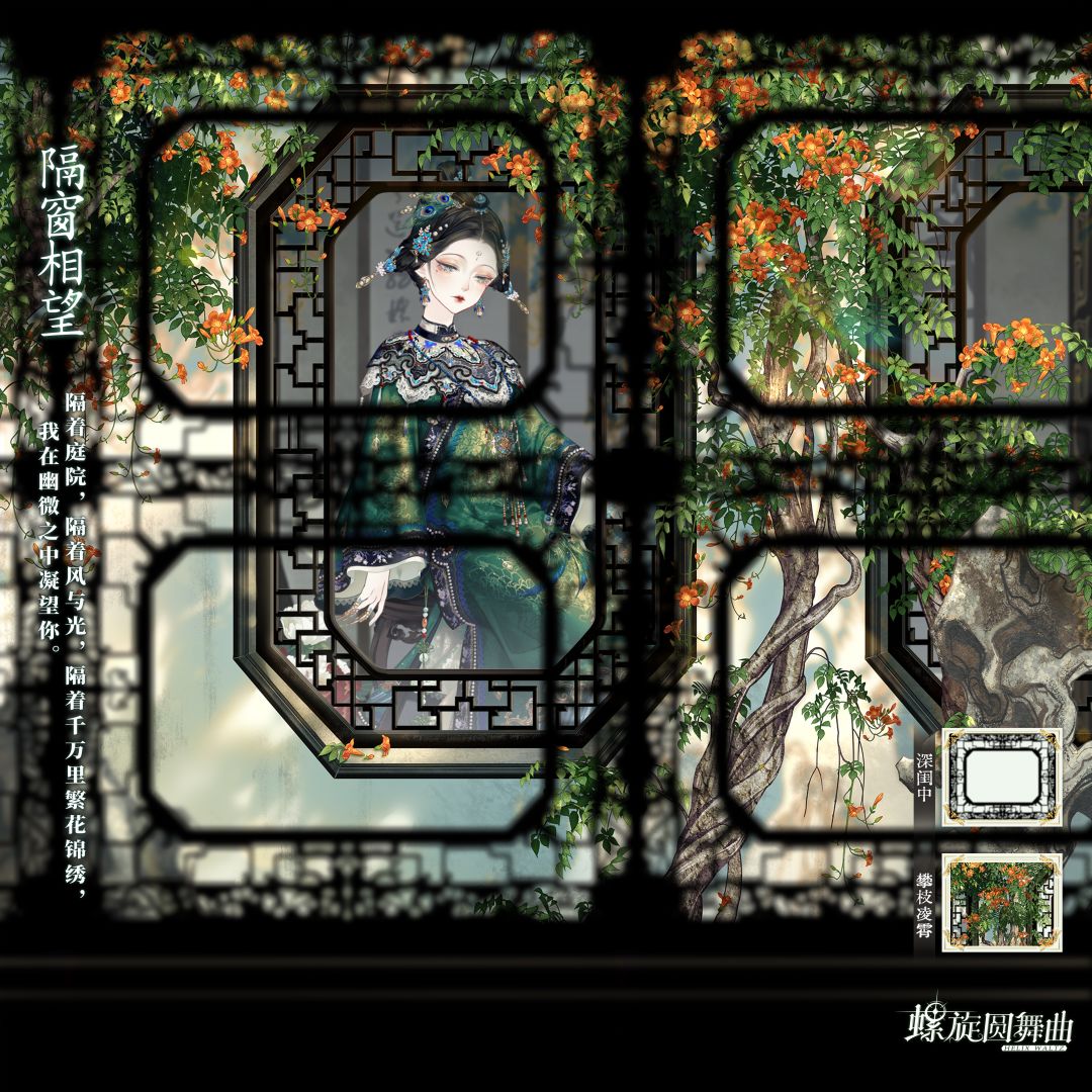 「花窗兑换」价值3神化印记,内含前景「隔窗相望」「攀枝凌霄」「深闺中」,限兑换1次。