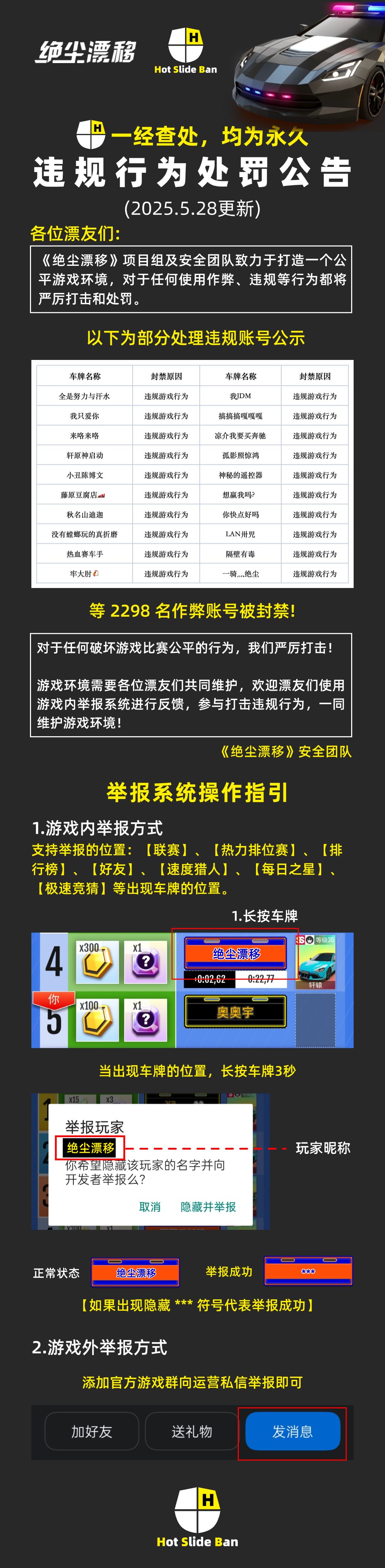 《绝尘漂移》违规行为处罚公告(5.28更新)