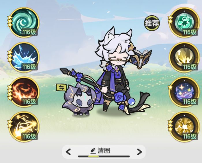 注意顺序!闪电链/水龙术(多段水伤,适合清图和boss)/水弹(0cd,适合pvp)+星辰闪烁(对单对群皆可,清除敌方增益)+蓄能爆发(提升下一个技能50伤害倍率和25精准)+破晓光束(对护盾单位伤害翻倍,适用对单boss、清图、pvp)
