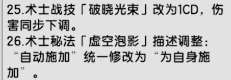 首先第一个职业调整,术士破晓光束改为1CD,伤害同步下调。