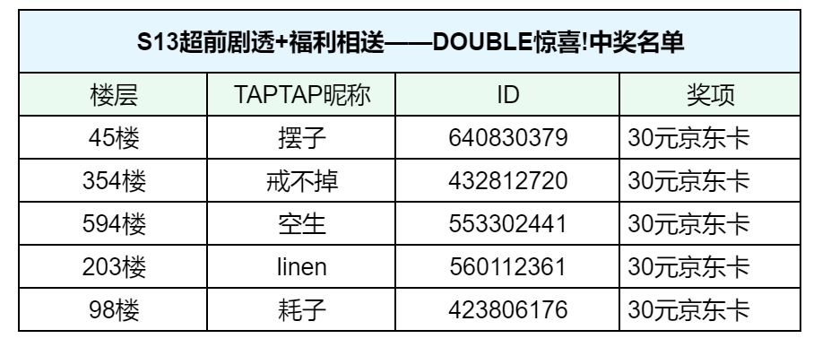 【已开奖】S13超前剧透+福利相送——DOUBLE惊喜!
