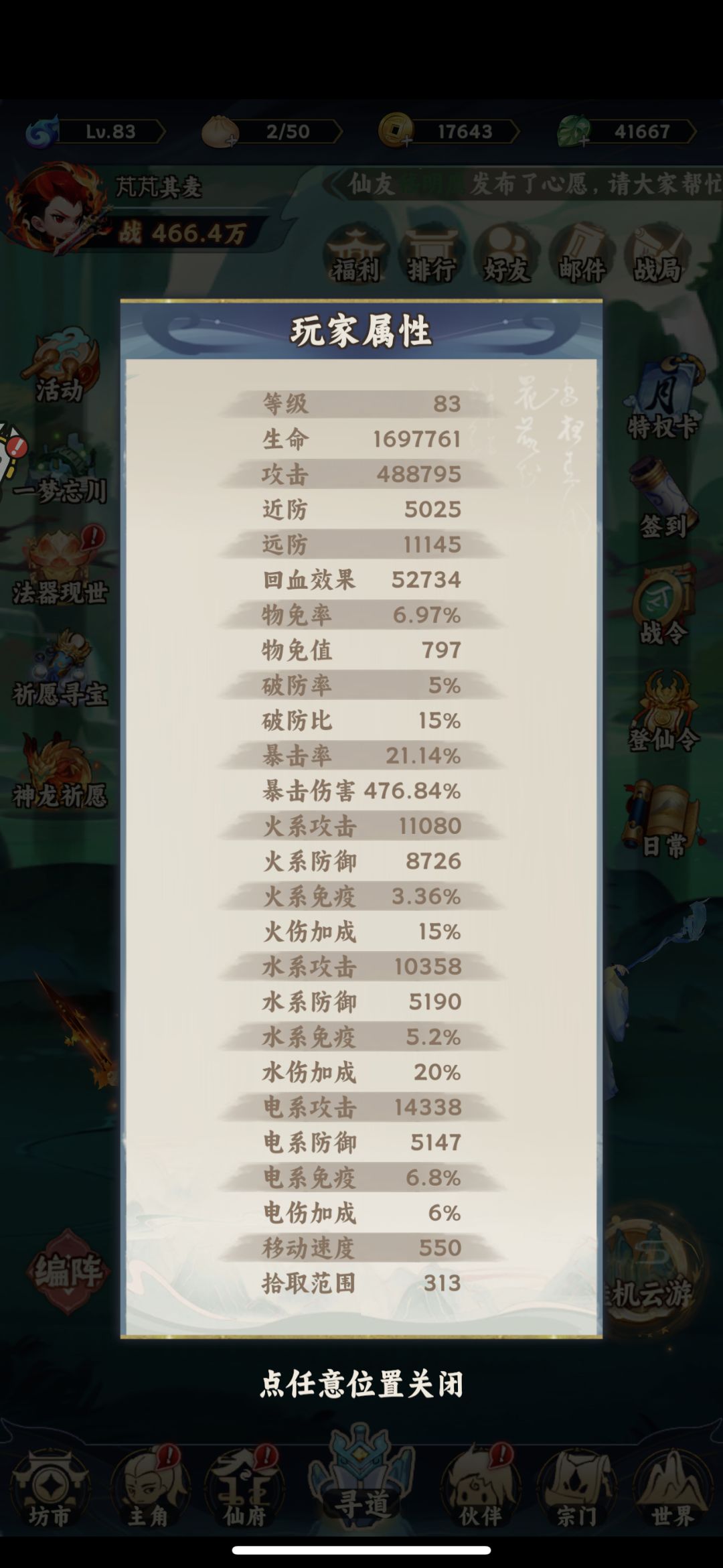 芃芃其麦 战力暂时466W (ps小技巧,可以点战字数值,可以看详细数值,既有血量,攻击力,暴击率,暴击伤害,又有一些其他属性)图9