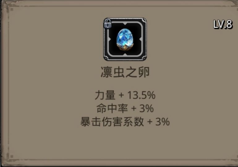2.凛虫之卵给狂战使用时:其数值相当于13.5力+3命中+2~2.7物伤。