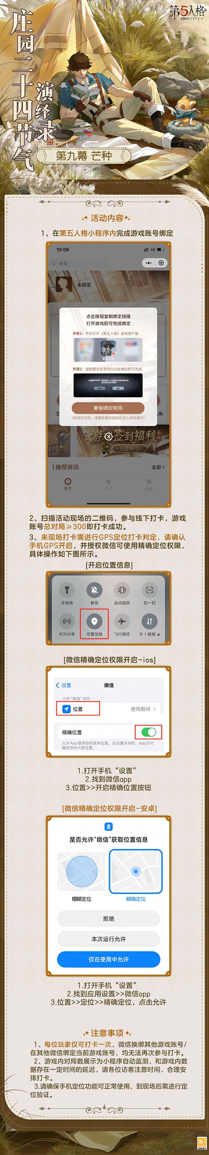 参与现场活动,各位访客有机会获得二十四节气头像-【芒种】兑换卡、线下限量徽章【芒种】、线下活动限定明信片、第五人格周边等丰富奖励~