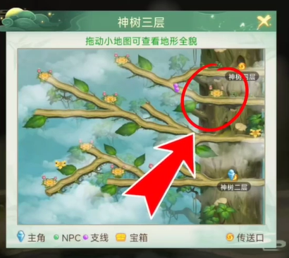在主线地图【神树3层】,前往下图所示位置,捡取落叶。