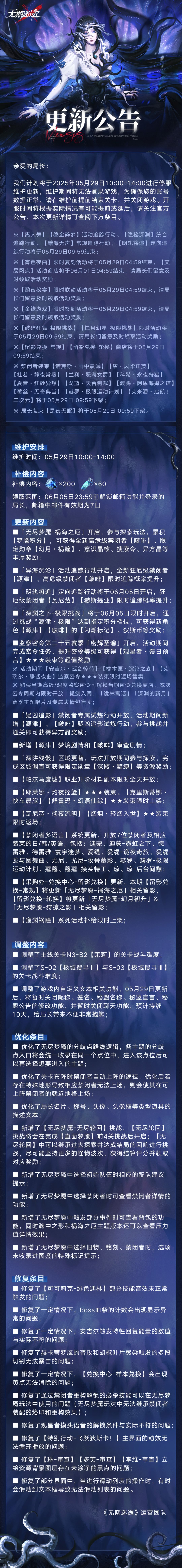 【公告】丨05月29日停服维护更新公告
