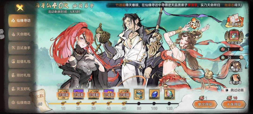 卡池之后配队即为至尊宝,唐蝶衣,五行剑,元润,紫霞。五行剑可换五行禅。