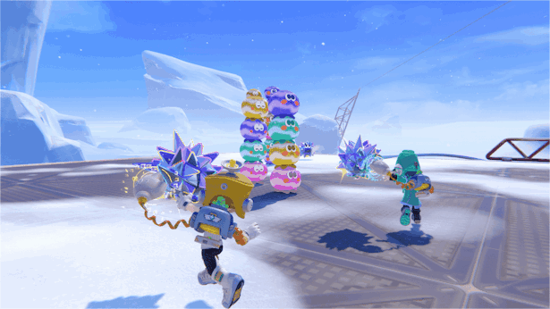 通过发射不同颜色的子弹对敌人进行攻击、或是与场景内的物体进行交互!