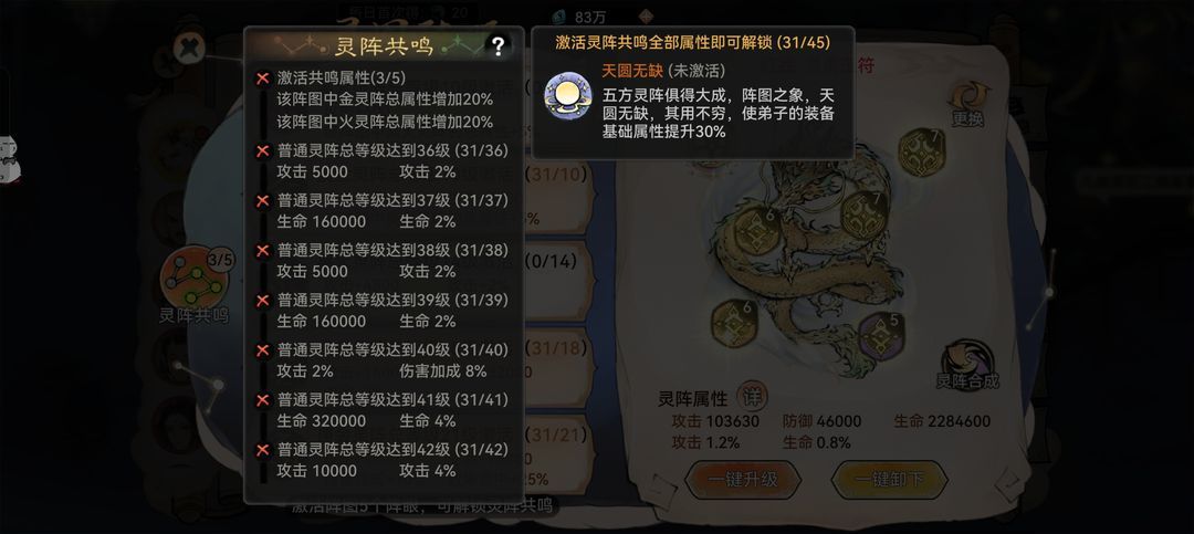 三个低级灵阵融合一定量阵时可以合成高1等级灵阵。
