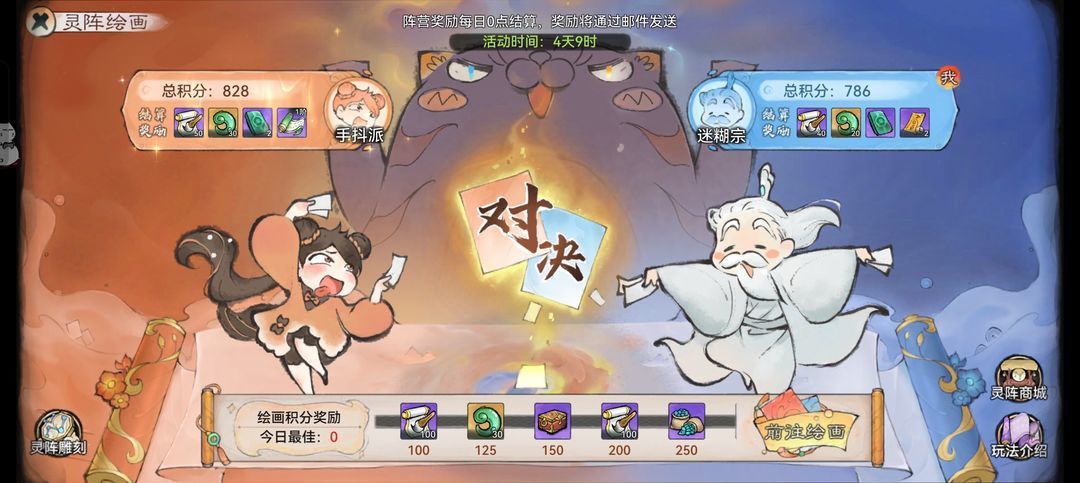 灵阵拓片可以通过后山阵灵和灵阵绘画等活动获取。强烈建议玩可以兑换五行灵阵材料的那个灵阵绘画活动,只要获得对应五行灵阵兑换用的资源就行,不用强求分数拉满奖励全得。