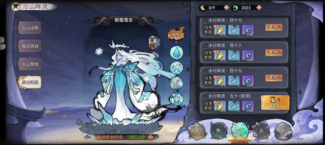 后山阵灵玩法只推荐周一周四周六周日刷金火灵阵,只推荐一天最多买一次额外刷新劵