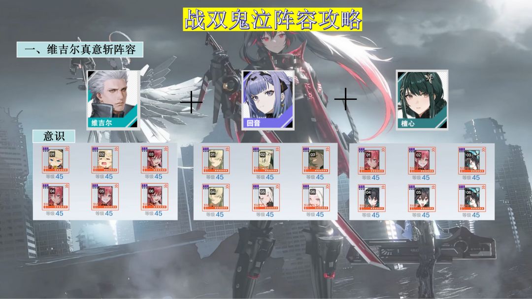维吉尔队长,增幅型角色选择亚里莎·回音,装甲型角色选择含英·檀心,如果没有可以换成罗塞塔·凛冽(不过伤害会低很多)