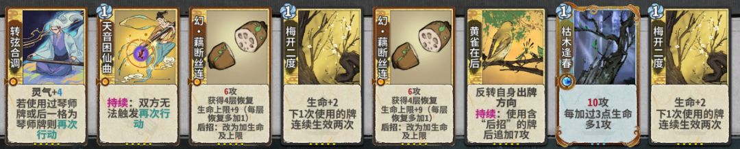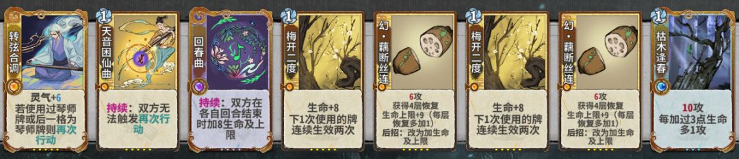 始发的七星阁未来卡中,最契合家雁带奶套路且成型还能作为key牌的就是幻•藕断丝连,我们新时代琴b后期可以放心大胆走掉静气紫气。此卡配合琴师还是很有强度的,加入藕门吧^^