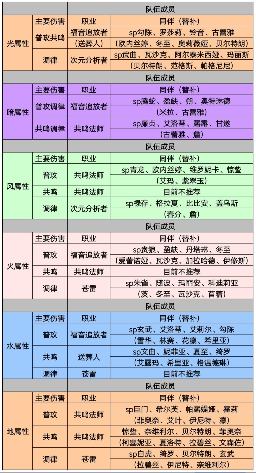 六大属性配队推荐 wiki25年8月版