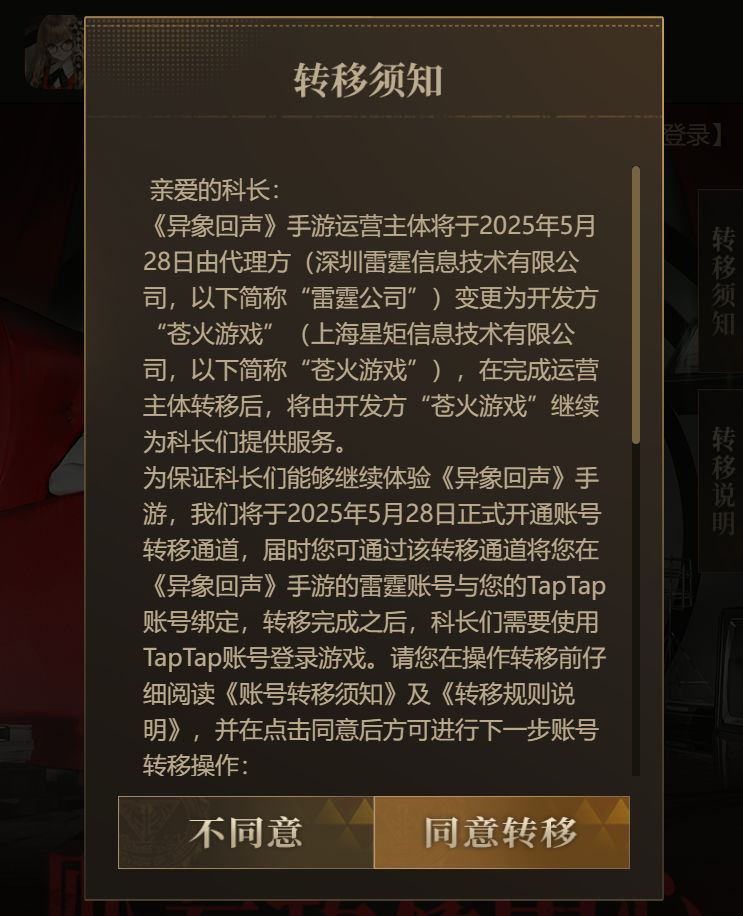 《异象回声》账号继承相关说明