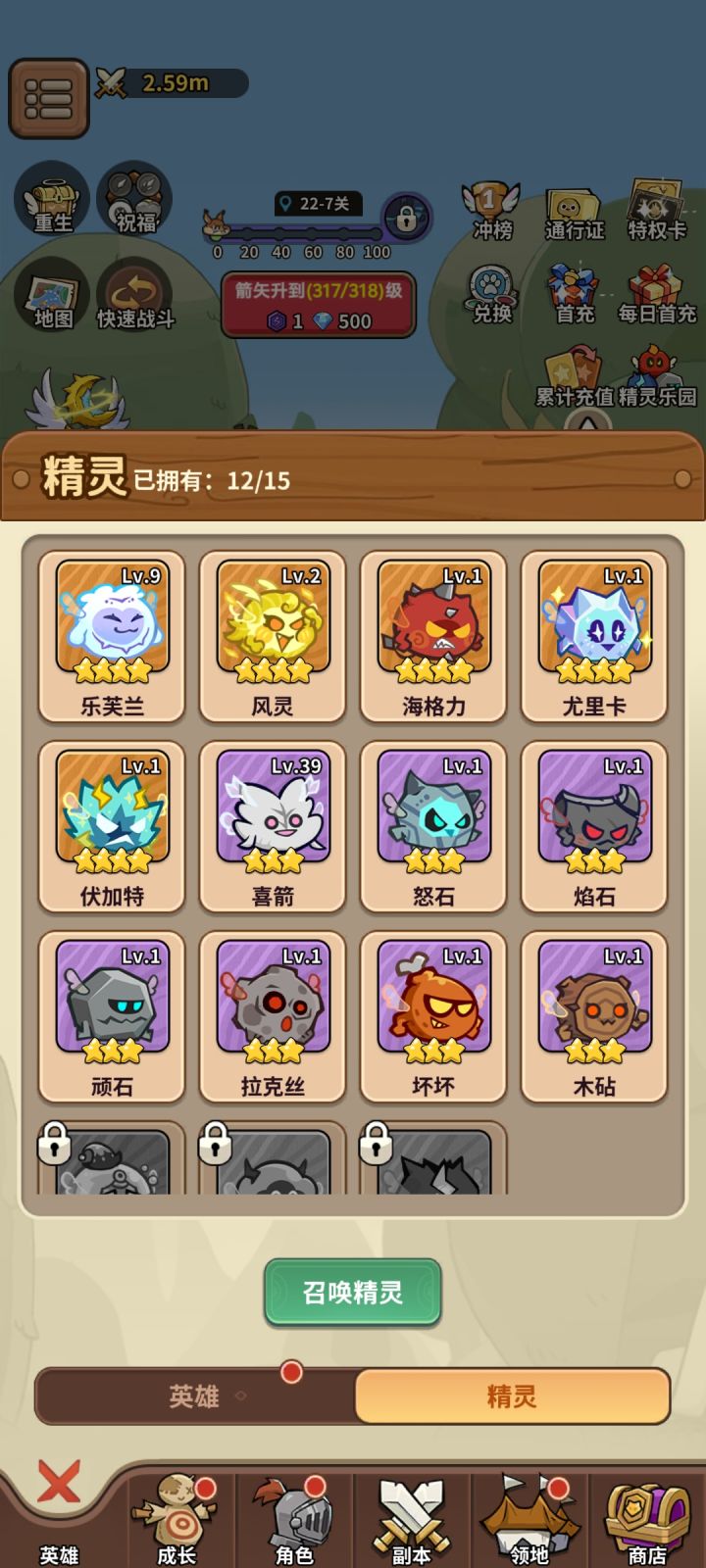 T0.5 伏加特 乐芙兰 (伏加特在前期非常推荐,一只就行,可以让你在前期快速的刷重生石和钻石收益非常高,第一天让我在四个喜箭和一个伏特加之间选择我一定会选择伏特加。乐芙兰如果前期红钻宽裕也可以买,四星的精灵不好刷)