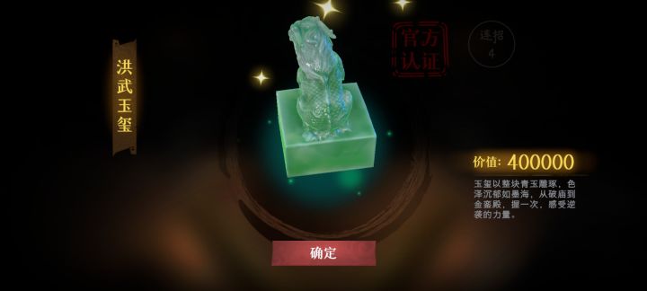 突然进去左边有个“神秘商人”图标,原来是鉴宝系统,得到了洪武玉玺