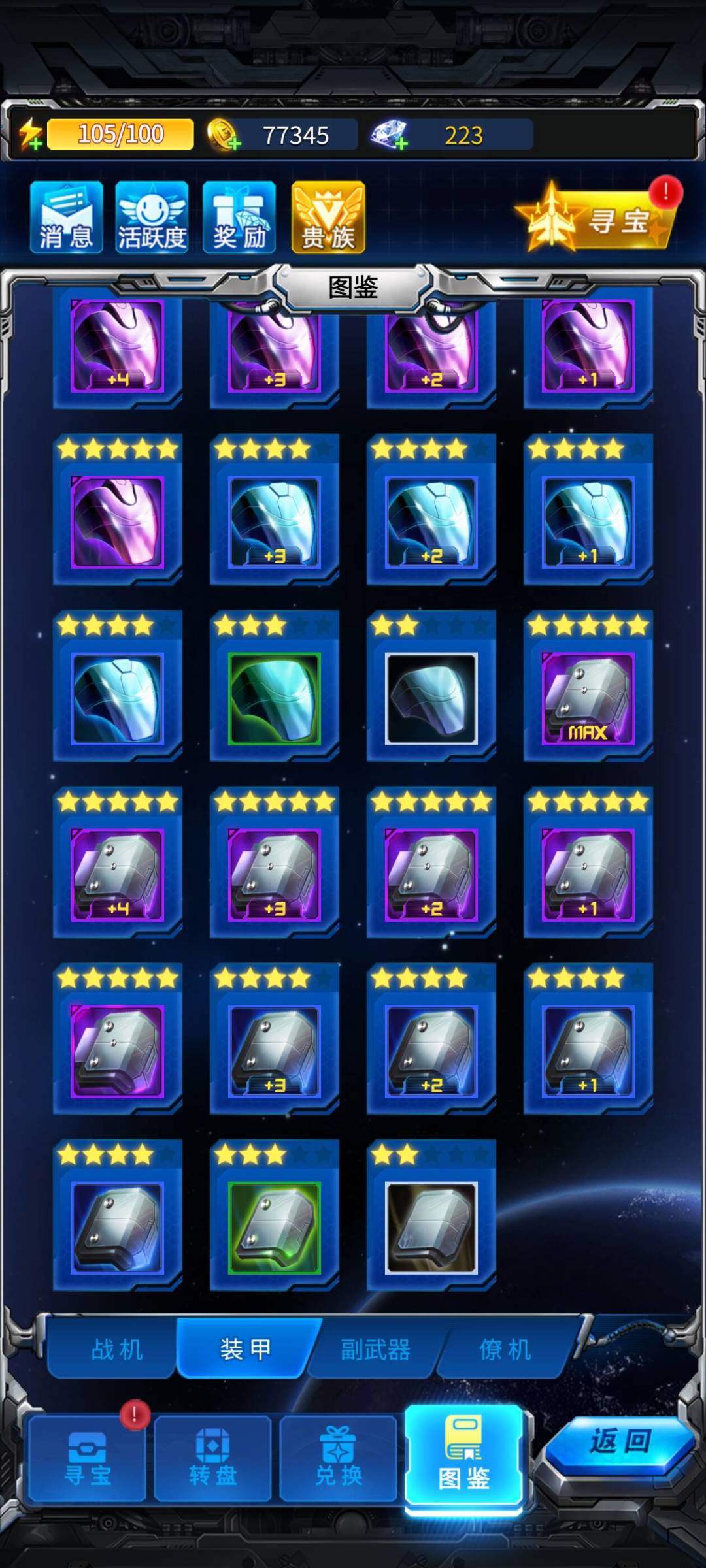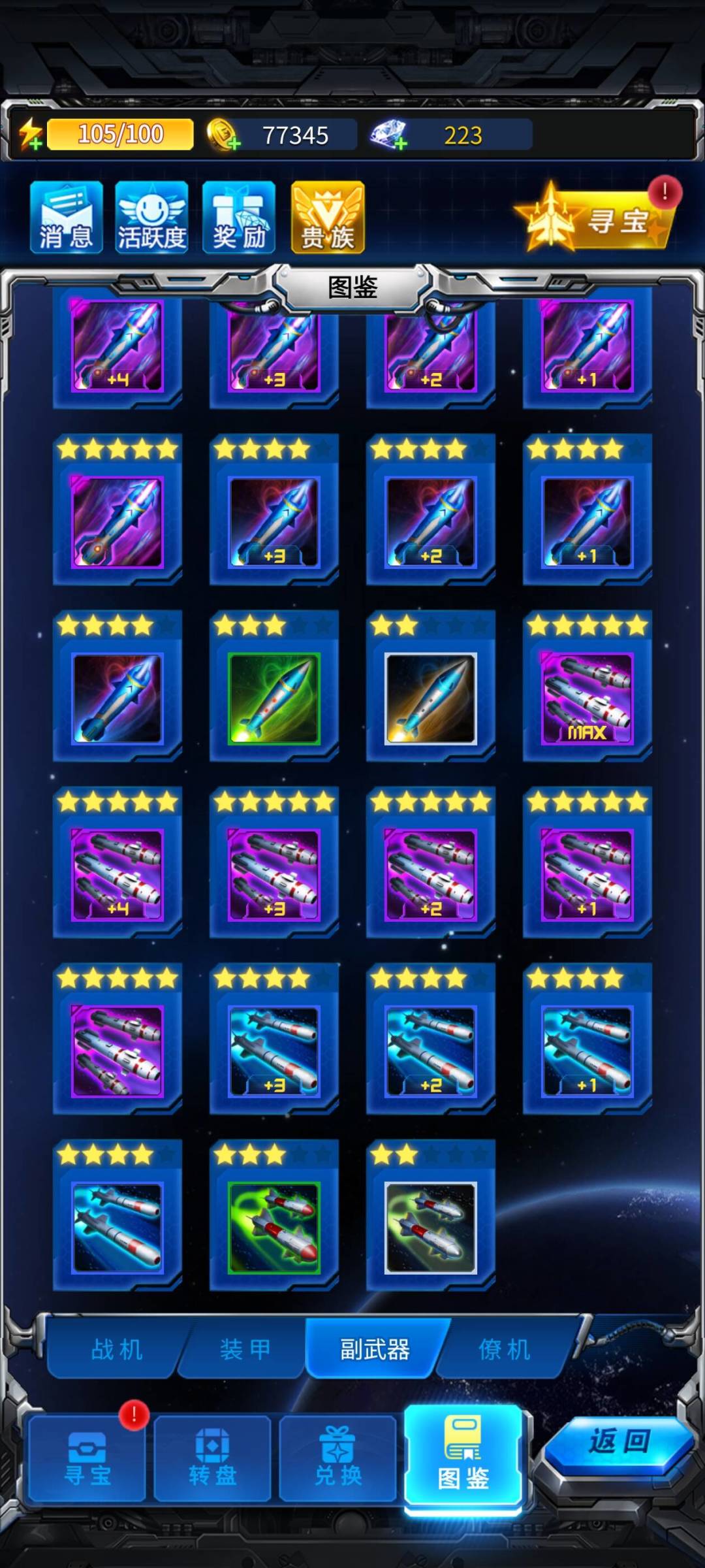 如何判断一个装备是不是三线四线呢?我们点开寻宝-图鉴,从上往下看,四种不同的战机依次为一线二线三线四线。