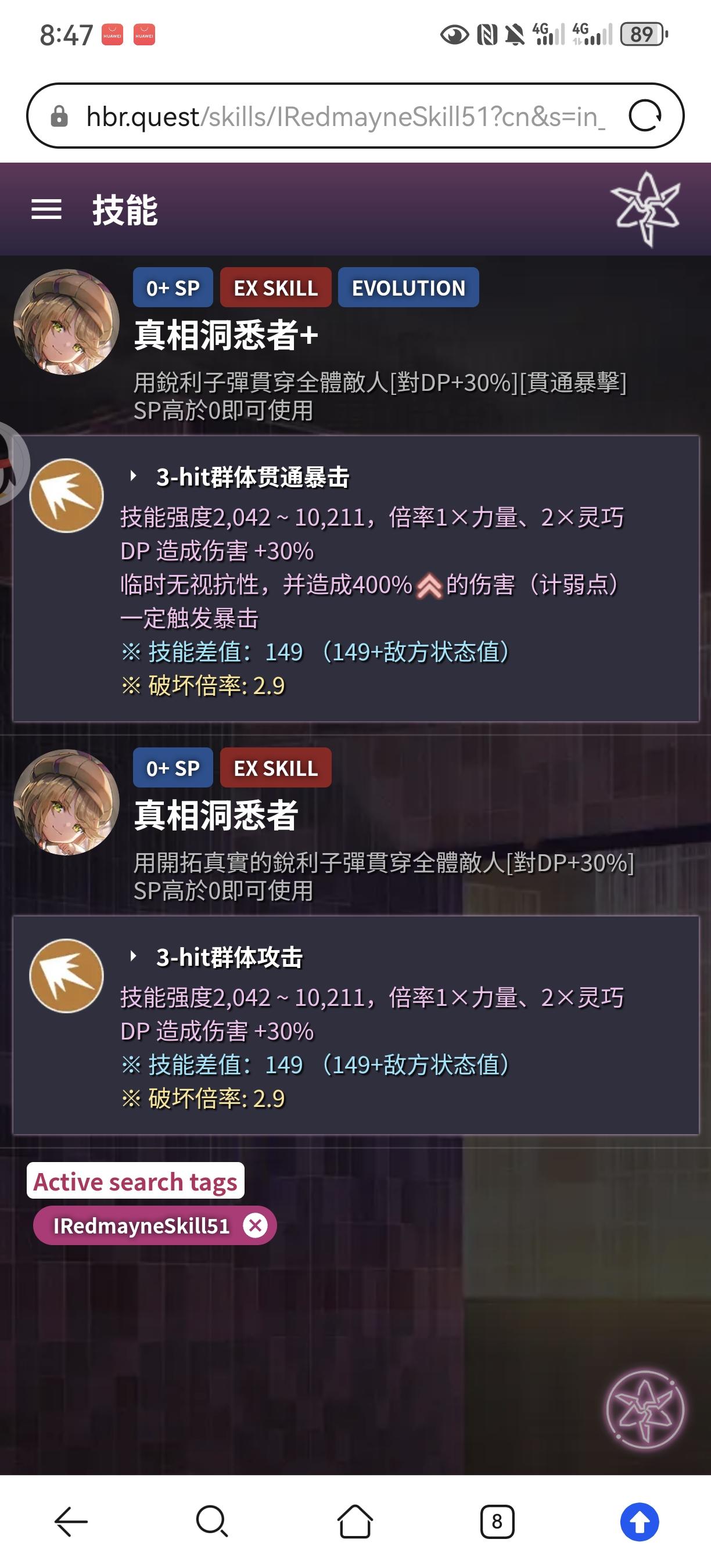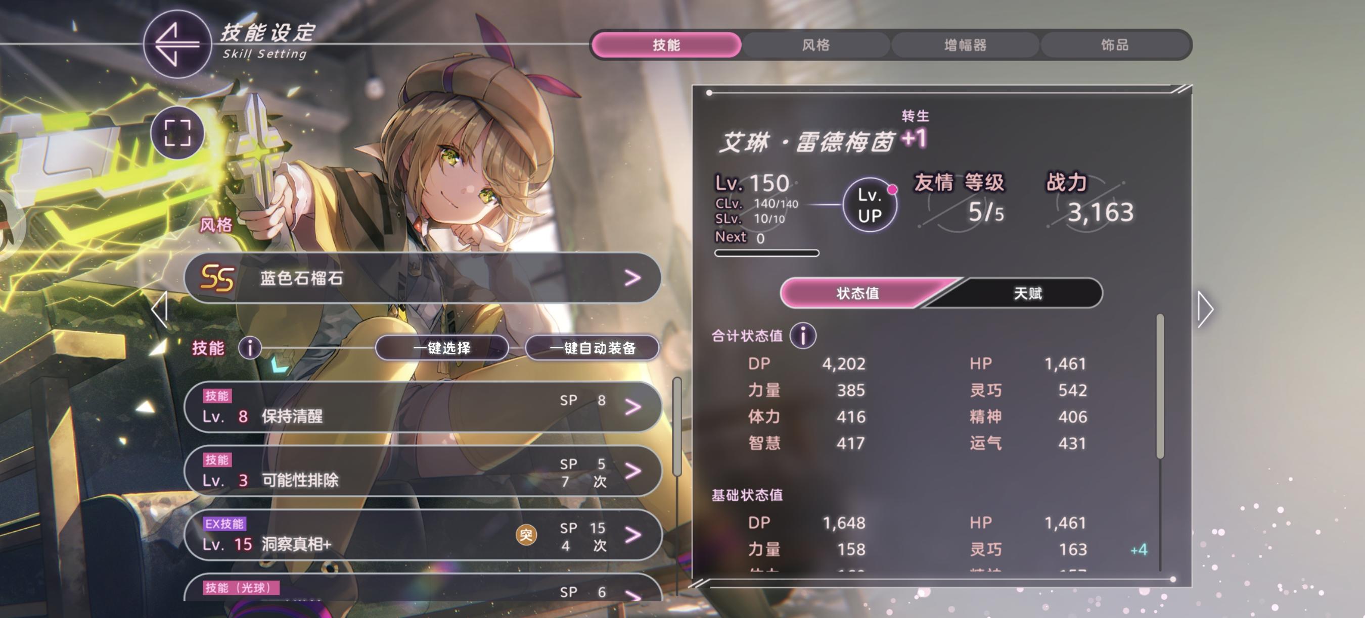 等效属性是影响伤害的很重要的因素之一,它跟力量灵巧有关,跟技能介绍有关,没有特殊说明就是(力量+灵巧)/2,dp加成(力量+灵巧*2)/3,hp加成(力量*2+灵巧)/3,体力依存等于体力,智力依存等于智力,跟实际打dp还是打hp无关,也就是说dp加成去打hp,计算方式还跟原来一样,跟暴击有关,暴击了敌方属性会减50,就相当于等效属性+50方便计算,跟斗志灾厄有关,斗志我方等效属性+20,灾厄敌方等效属性-20,但是暴击的-50不叠加,又暴击又灾厄只减50。以打分为例,侦探力量385灵巧542,有贯通暴击有闪耀声援,就是(385+542*2)/3+50+20=559.67,之后参与计算的等效属性就当560。