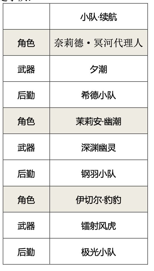省略,官方角色属性设计的简单粗暴,后勤小队的专属化,使得后勤小队的选取和适配词条相对固化。