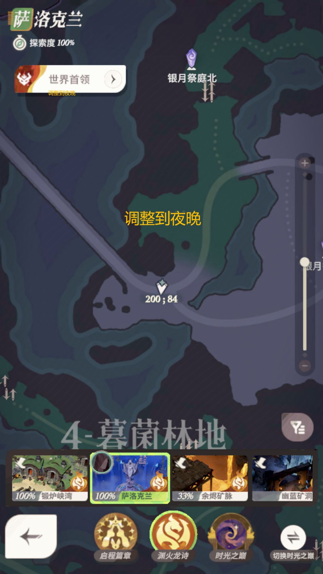 17、暮菌林地(214;86)时间切换到夜晚,站一会可以触发一小段CG,暂无奖励