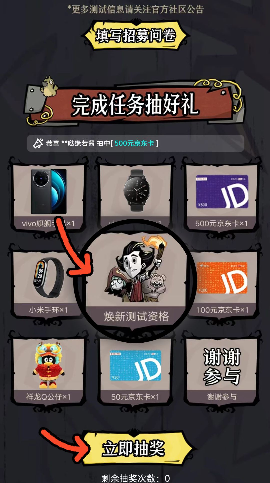 各位冒险家可查看taptap平台的站内信推送,确认是否有获取测试资格。后续会根据冒险家们参与情况追加测试资格和推出活动释放更多测试机会。