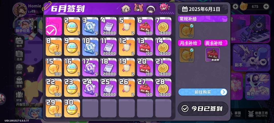 签到每月有500水晶+5高级扭蛋