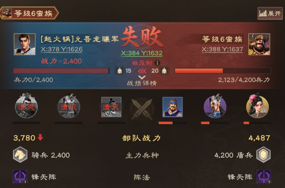 在我们挑战6级蛮族的时候会遇到一些挫折,根据战报可以得知士兵数量差得有点多,因此我们优先升6级的霸府,接着修建太学府,把一阶人口开出来,再把目前部队使用兵种对应的科技升级,做完这些之后就能打过6级蛮族了。