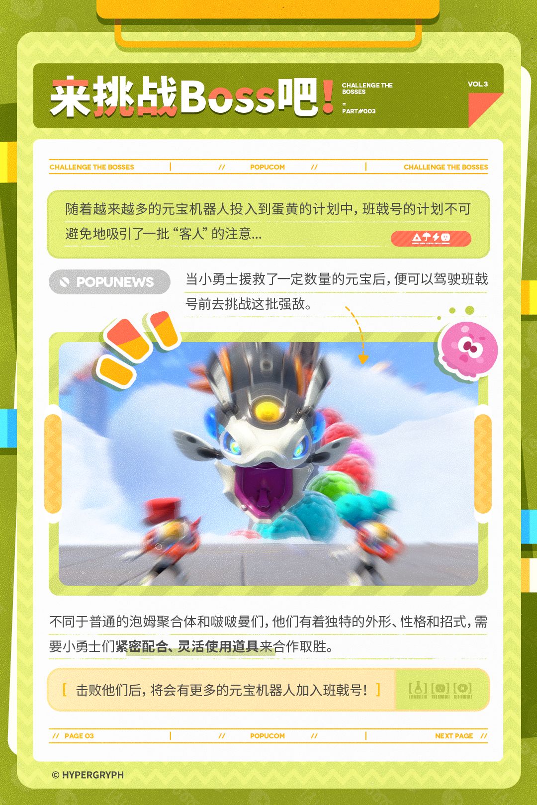 蛋黄为小勇士带来了关于飞船中那个神秘房间的一些消息,据说除了博士留下的游戏卡带外,还有需要更多伙伴才能攻克的特别关卡,一起来看看这期的泡噗通讯吧!