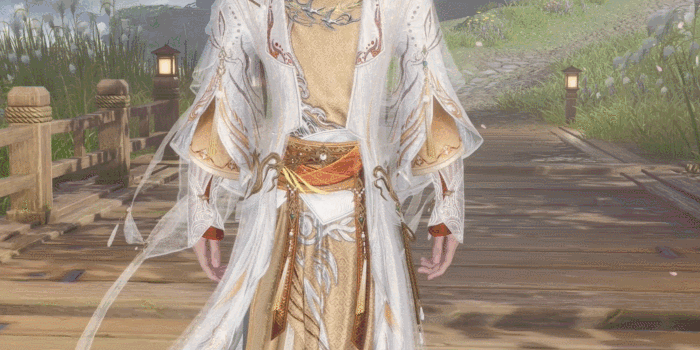 动图画质压缩,游戏内实际效果更佳 男款基于“四不像”的形象,将衣领微微翘起,雪白直襟长袍作底,鎏银飞燕盘于襟前,意趣盎然!腰系亮眼流苏点缀,雅致非凡。