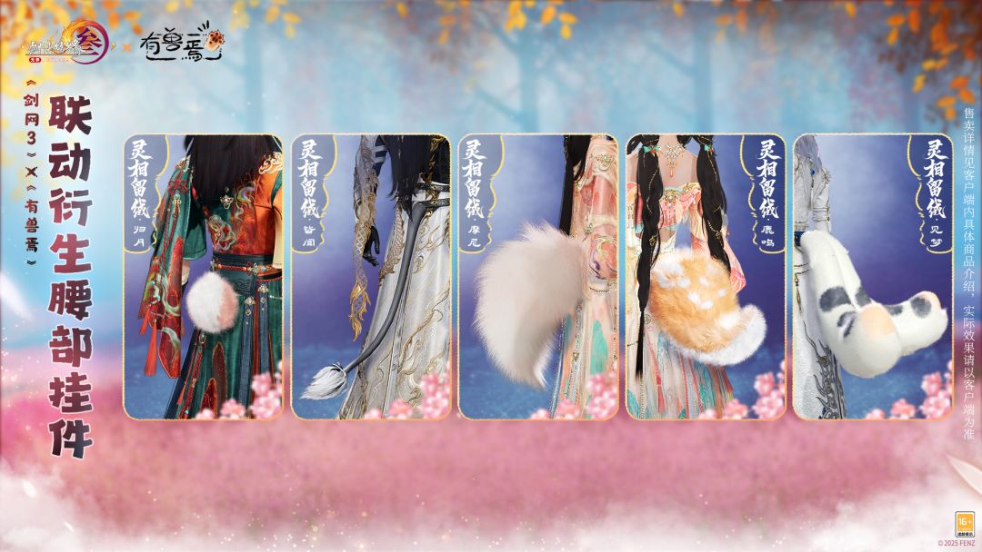 祥瑞至江湖,“萌”威护万年。神兽们性格迥异、各具特色,《剑网3》×《有兽焉》联动系列挂件根据他们的特点而衍生。本次还将推出联动衍生耳朵、尾巴绑定款3.1折特惠礼包,礼盒内含10款挂件,23333通宝全部拿下!