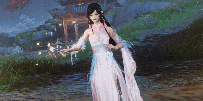 如若开启外装特效,侠士将莲步轻移掠水纹,荡起层层涟漪,流光古树与神兽绒爪浮现,屏开千叠彩,兽影升腾,光彩熠熠!