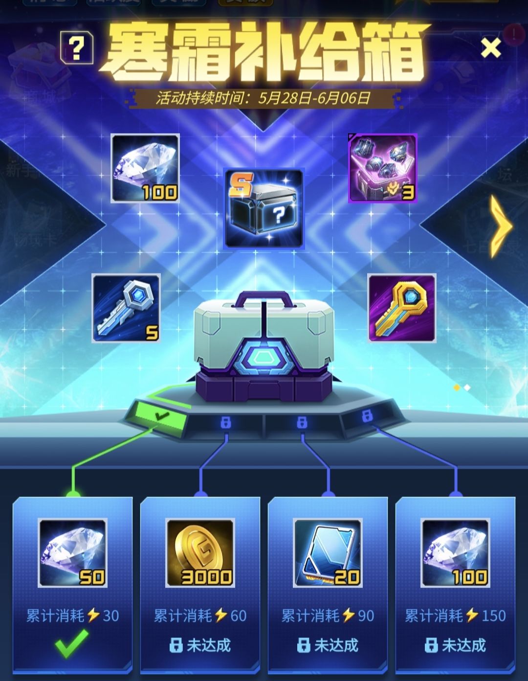 寒霜补给箱:消耗体力就能领取奖励的活动,每日正常做满即可