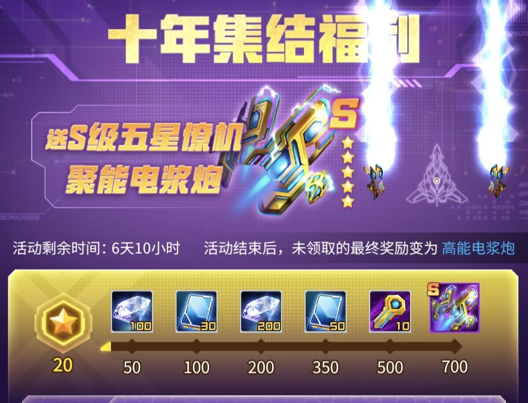 十周年活动:十周年活动给的资源非常多,1000体力再前期开荒帮助很大,还有钻石资源,培养战机还会送皮肤,