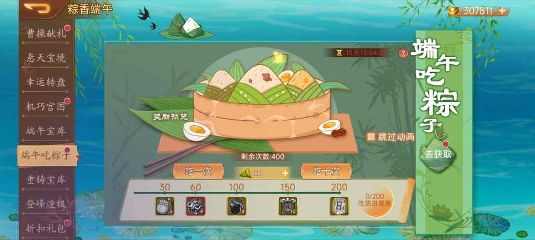 活动内容:活动期间,完成任务可获得粽子,吃粽子随机获得道具奖励,吃粽子达到一定数量,还可额外获得奖励。
