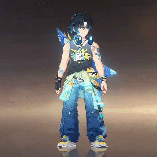 男装蓝色牛仔裤搭配黑色无袖上衣,展现不羁的摇滚精神。腰间小包,耳机轻挂,手中的电吉他弹奏着旋律,将国风韵律与现代潮流有机融合,演奏出燃爆整个盛夏的音浪。