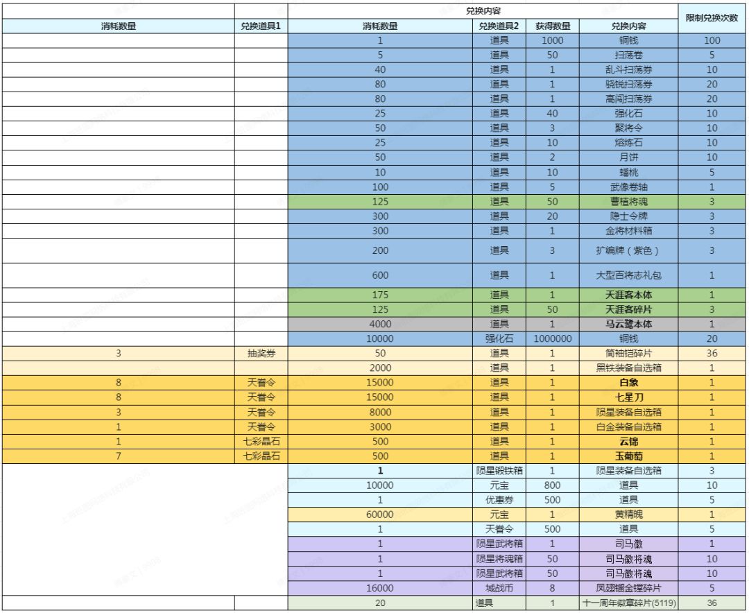 活动道具兑换时间:
