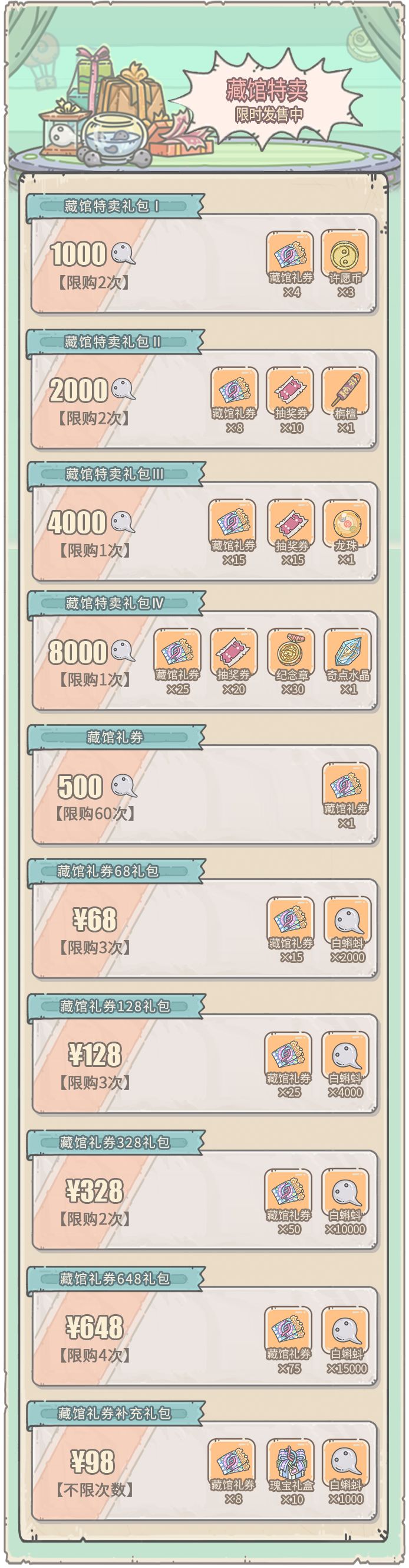 - 购买藏馆特卖礼包获得