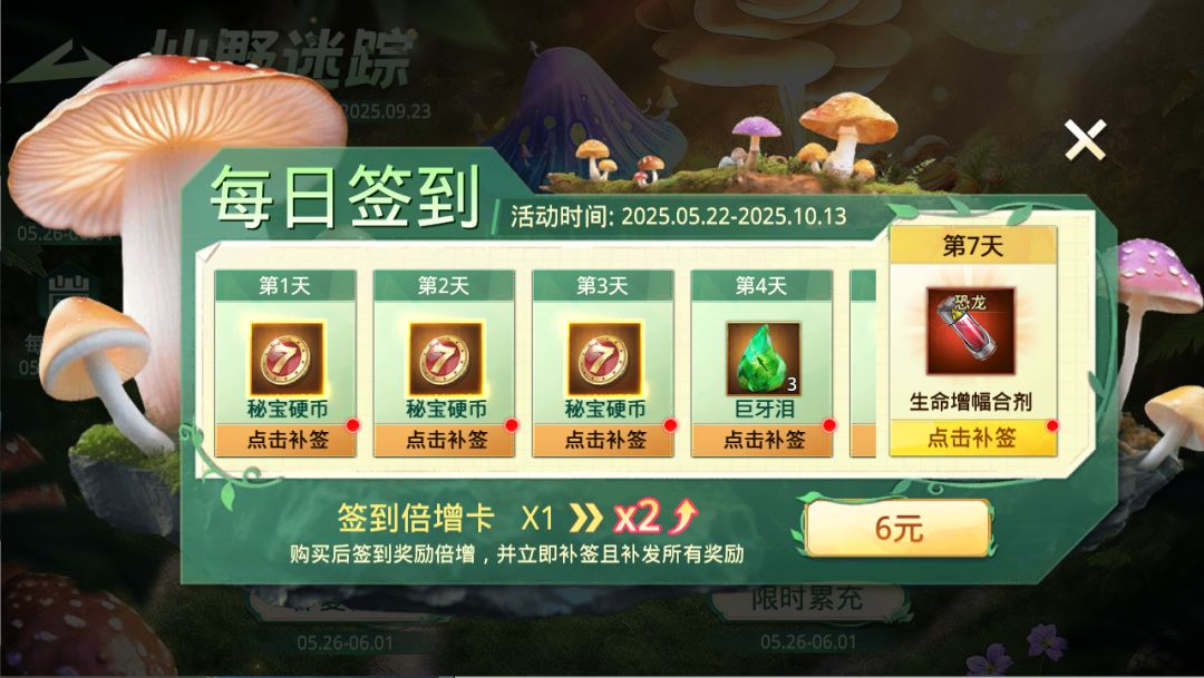 3、使用签到倍增卡后,可一键补签并直接获得双倍签到奖励(含当日及历史未签到日的双倍收益