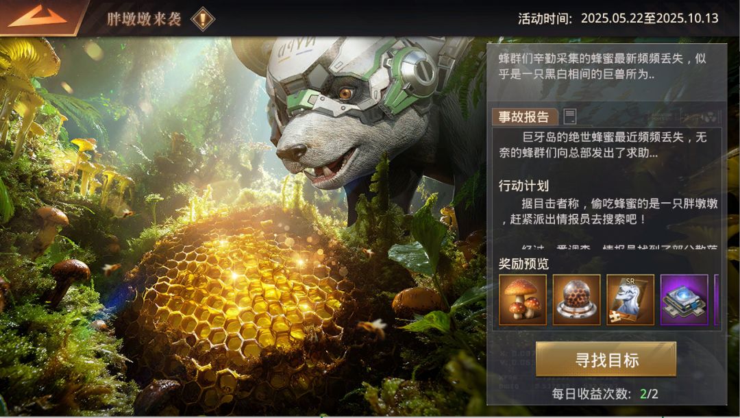 活动说明:1、活动期间,派出探险家将有机会遇到【偷吃的胖墩墩】2、一齐集结抓捕胖墩墩,可获丰厚奖励,包括战令积分道具、锻造晶核等等