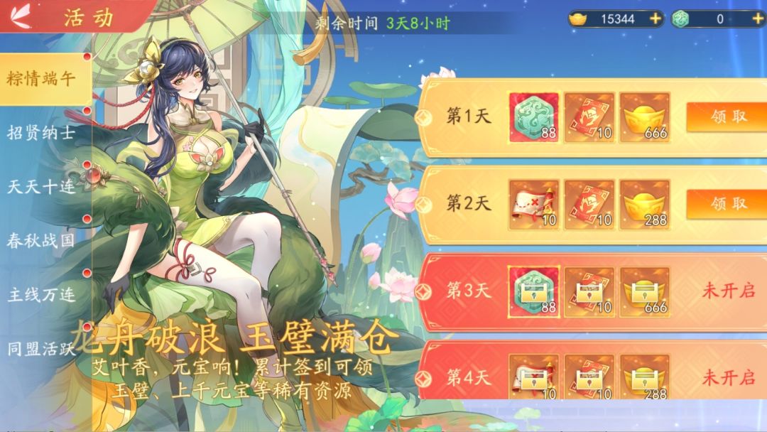 5月31日起,登录游戏参与5日签到可领取玉璧、元宝、招募券、高级藏宝图等珍稀资源