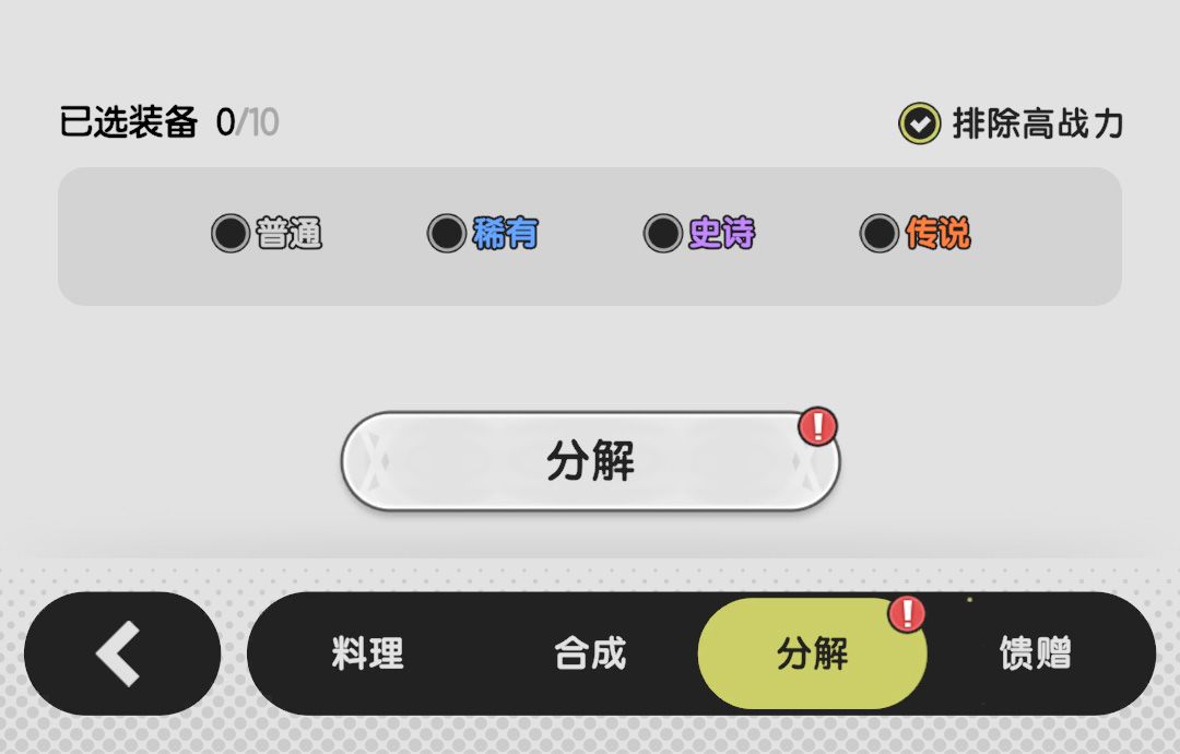 分解:分解低级装备得到粗练石