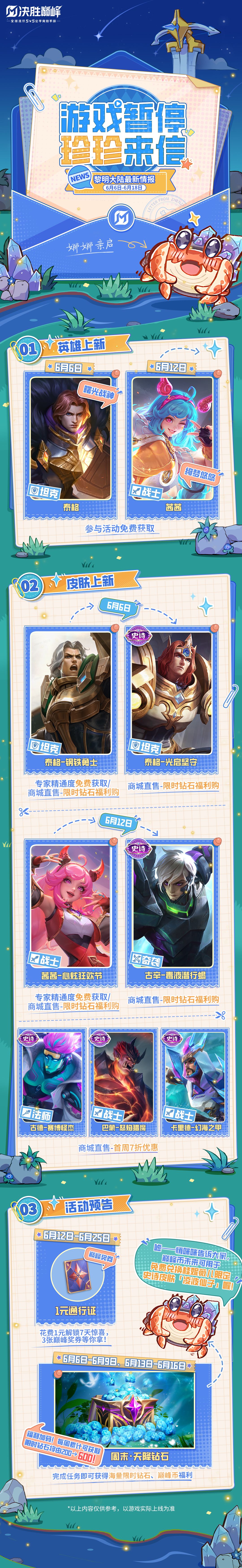 亲爱的娜娜:展信佳!是我,珍珍!不知道你在黎明大陆的探索之旅还好嘛?有没有交到更多新朋友呢?你不在的这段日子里,从河道来往的英雄们口中我又打听到了很多新的情报哦!打开看看都有哪些新鲜事吧~