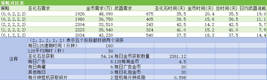 不多逼逼直接给数据,纯概率计算,不考虑活动收益,至于垫刀有没有用那就自己看着办吧。