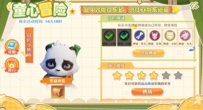 3) 排行榜会收录每天挑战星级最高,回合数最短的前50名道友,并发放限时称谓「童心冒险王」。