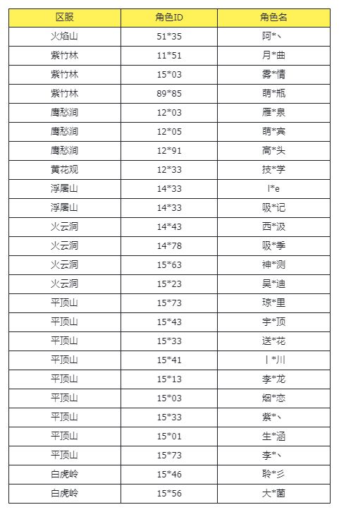 对于数量获取异常的玩家,将对额外获取的材料进行相应扣除,以下是对应玩家名单: