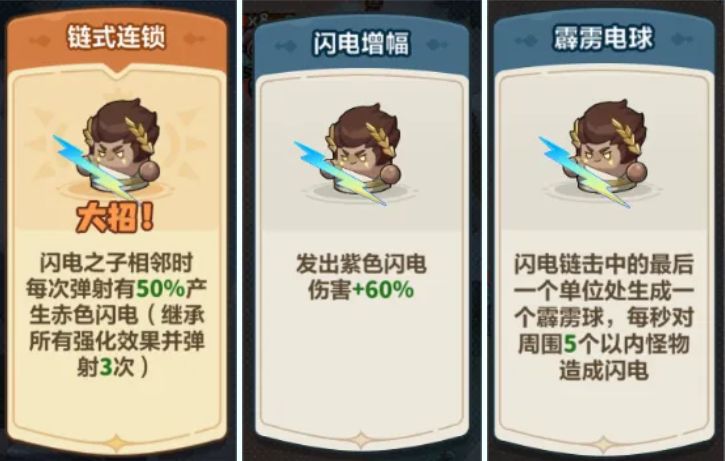 强化词条推荐优先选择大招词条【链式连锁】,【雷电强化】,【电球】,提升AOE爆发,快速清场。