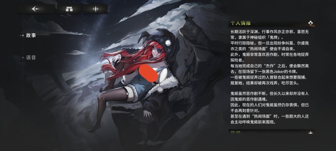 吼呀吼呀,初次见面,在下是公会情报部的普通干部,代号犰狳。行走在深渊的探险者们,对鬼牌这个组织多少该有所耳闻吧。成员虽少,但各个实力不俗,就算表面上只是在追求所谓的“戏剧”,谁又能知道她们是否在酝酿更大的阴谋呢?